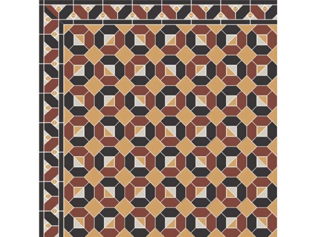 Mustard, black and red from the traditional pallet are combined here in a classic design. Perfect in a domestic hallway or porch, but tough enough for the outside too. All Victorian Collection designs are mesh mounted for ease and accuracy of installation .
